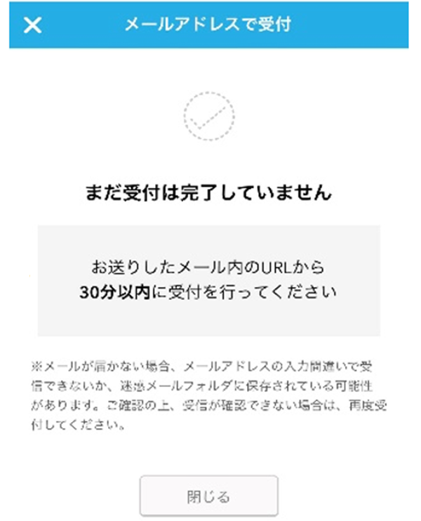 メールアドレスを入力して受付する場合、受信できるメールアドレスを入力後、「メールアドレスで受付する」をクリックします。