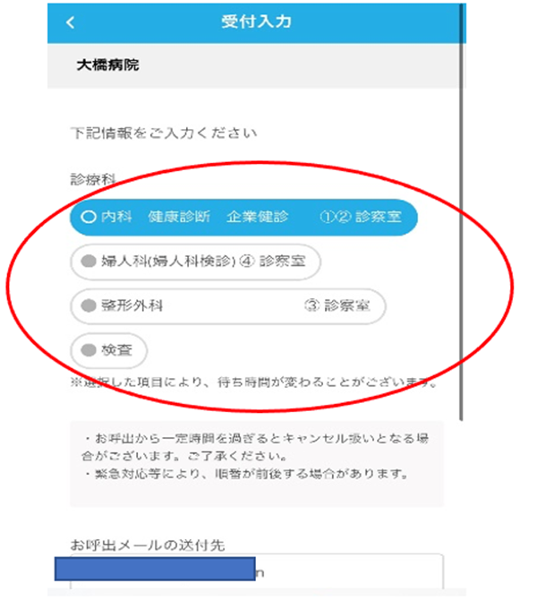 大橋病院では、直接ご来院いただいて受付する方法と、ネット上から受付する方法の2つを行っております。院内で待つ時間を少しでも減らす為、スマホ等の機器をお持ちの方へはネット上からの受付をおすすめしております。ただし、一部診療科ではネットでの受付を行っておりませんので、その際はお手数ですが直接ご来院くださいますようお願い申し上げます。(予約制の為)